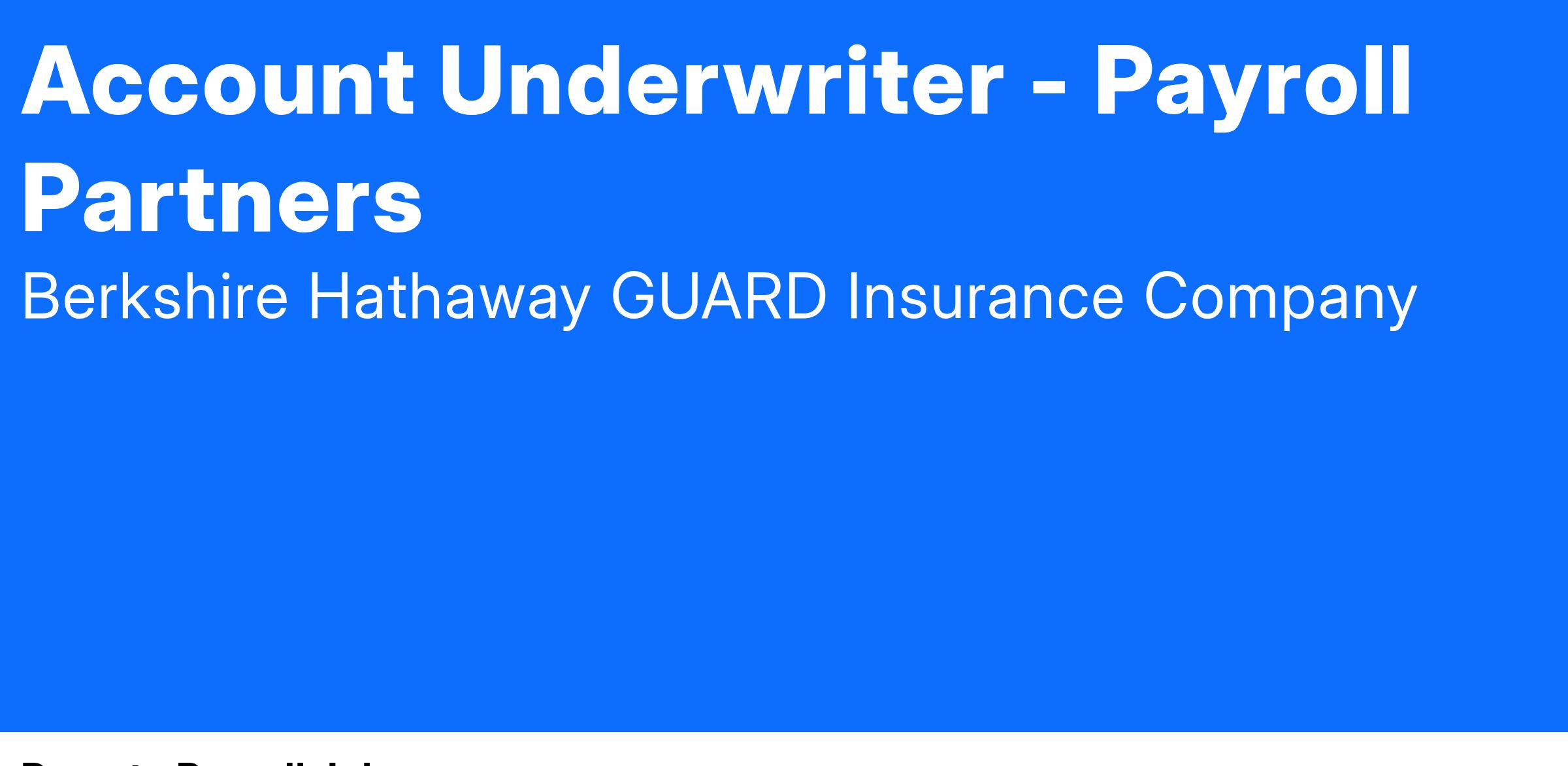 We are seeking a relationship-driven Account Underwriter to join our Strategic Payroll Partners Underwriting team in Scottsdale, Arizona. In this role, you will take ownership of underwriting responsibilities for a defined agency territory, with a strong emphasis on field presence and business development. The ideal candidate pairs underwriting experience with excellent communication skills and the ability to work in a fast-paced environment.
