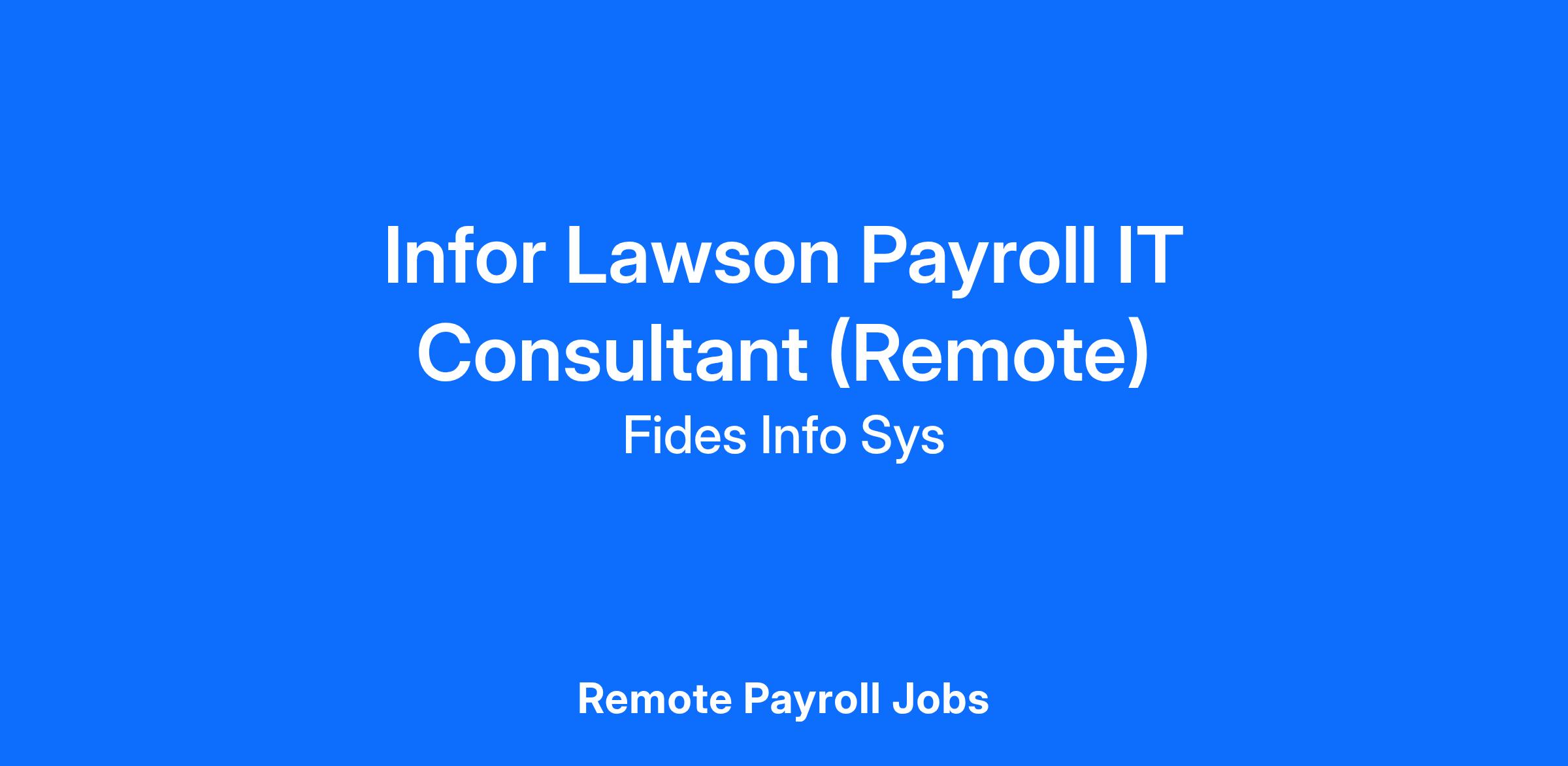 FIDES is seeking an Infor Lawson Payroll IT Consultant to provide administration, application support, and end-user assistance for Infor Lawson Payroll systems. The consultant will partner with HR, Finance, and IT teams to ensure reliable payroll operations, manage integrations, and support system upgrades and patches. This is a consulting role.