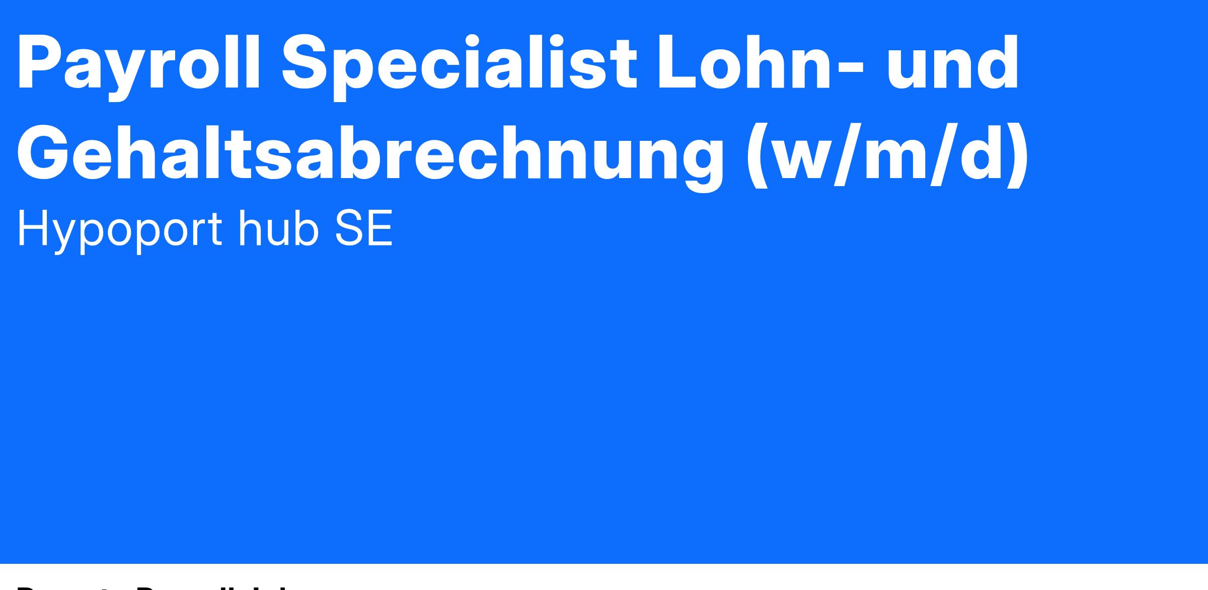 Du begeisterst dich für moderne Personalarbeit, stehst für Teampower und bist ein Organisations- und Strukturtalent? Dann verstärke unser Team in Berlin, Lübeck oder deutschlandweit aus dem Home Office als Payroll Specialist:in Lohn- und Gehaltsabrechnung. Für diese Position liegt das Jahresbruttogehalt – abhängig von deiner Erfahrung und Qualifikation – zwischen 50.000 € und 60.000 €. Zusätzlich profitierst du von regelmäßigen Entwicklungsgesprächen.