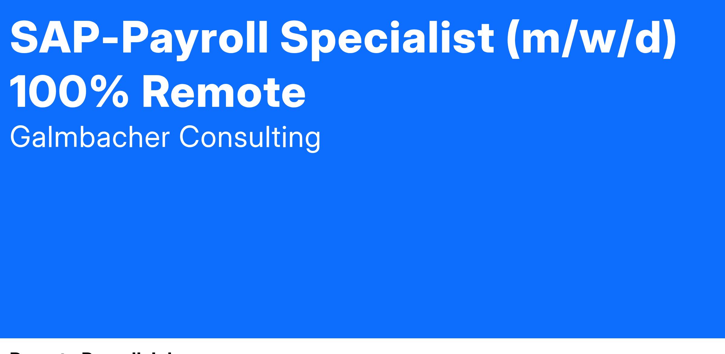 Bei unserem Kunden handelt es sich um ein weltweit bekanntes Logistikunternehmen mit knapp 10.000 Mitarbeiter*innen in ganz Deutschland. In 100% Remote sucht dieses spannende Unternehmen zum nächst möglichen Zeitpunkt Verstärkung für das Payroll-Team.