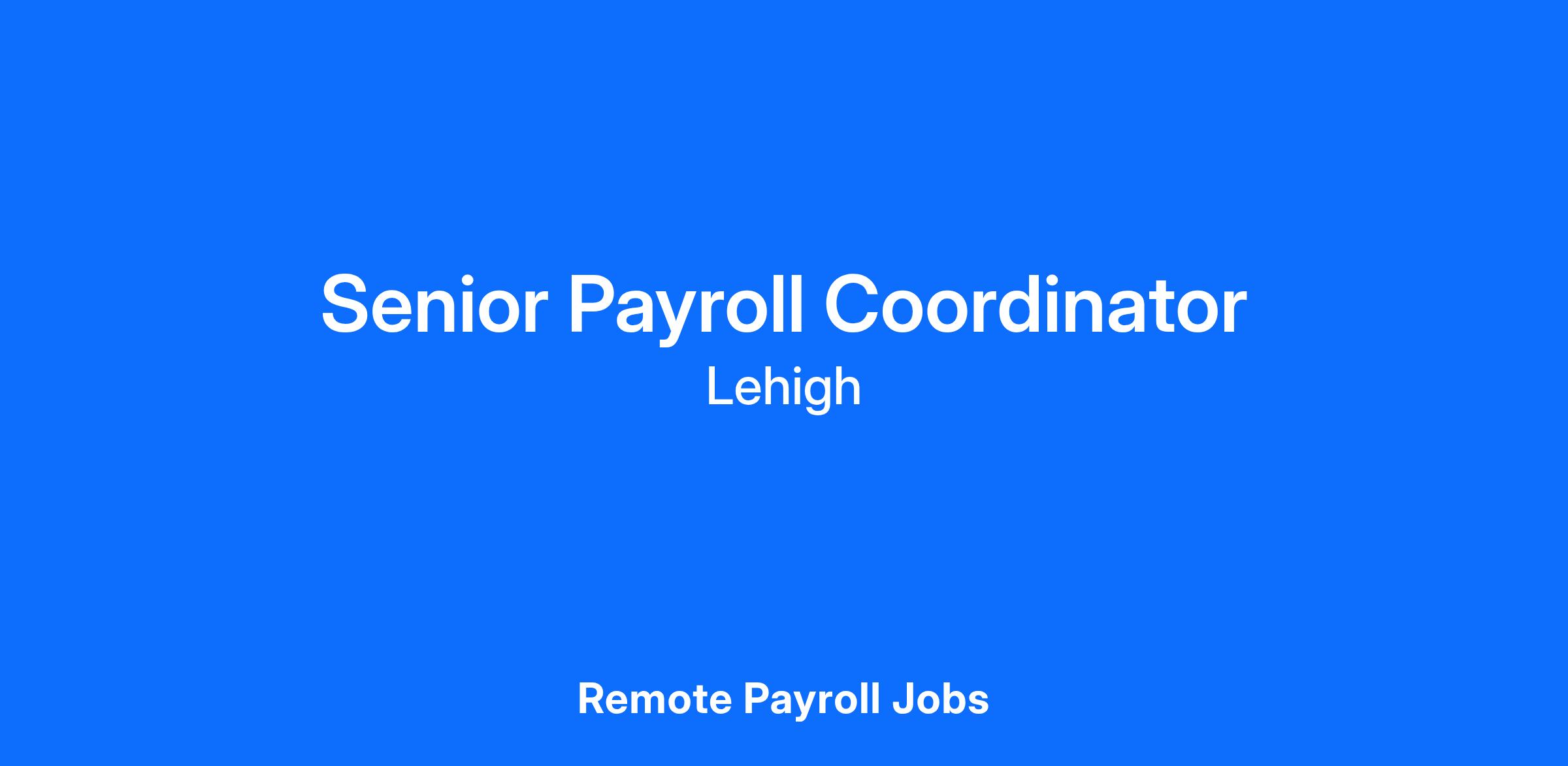 Are you passionate about precision and teamwork? Lehigh University seeks a dedicated Senior Payroll Coordinator to join our collaborative payroll team, where excellence and mutual support drive our success.